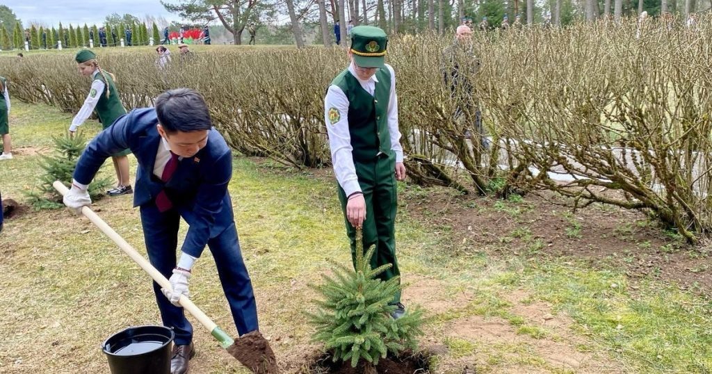 Беларусиянын Витебск облусунун Бешенкович районунда Кыргызстандын элчилиги тарабынан Улуу Ата Мекендик согуштагы Жеңиштин 80 жылдыгына жана Беларусту бошотууда салым кошкон кыргызстандык жоокерлерди эскерүү иш-чарасы өткөрүлдү. 🇰🇬 Бешенкович районунда Кыргызстандын Беларусиядагы элчилиги тарабынан Улуу Ата Мекендик согуштагы Жеңиштин 80 жылдыгына жана Беларусьту бошотуу үчүн күрөшкөн кыргызстандык жоокерлердин урматына иш-чара өткөрүлдү. 🌲 Иш-чара Беларусиянын Токой чарба министрлиги, Коргоо министрлиги жана Бешенкович райондук аткаруу комитети менен биргеликте уюштурулду. Бул иш-чара Жумаш Асаналиевдин эстелиги жайгашкан мемориалдык комплексинде өттү. 🗣️ Кыргызстандын Беларусиядагы элчиси Эрбол Султанбаев өз сөзүндө 30 миңге жакын кыргызстандык жоокерлердин Беларусьту бошотуу үчүн курман болгонун белгилеп, белорус элине кыргызстандык жоокерлердин элесин сактап калгандыгы үчүн ыраазычылык билдирди. 🌹 Иш-чаранын катышуучулары жоокерлердин эстелигине гүл коюп, мемориалдык комплексти
