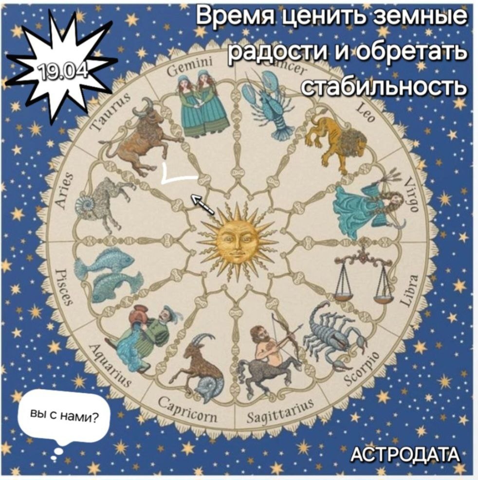🤗 ВСЕХ ПРИВЕТСТВУЕМ! Солнце входит в Телец и тема сегодня: "ВРЕМЯ ЦЕНИТЬ ЗЕМНЫЕ РАДОСТИ И ОБРЕТАТЬ СТАБИЛЬНОСТЬ" ☀️♉️ Сегодня 19 апреля Солнце меняет свой знак и переходит в чувственный, земной Телец! 🌍✨ Приготовьтесь ощутить, как фокус смещается на стабильность, комфорт, чувственные удовольствия и наслаждение моментом. В ближайшие недели возрастёт наше стремление к уюту, надёжности и материальной безопасности. ✨ Читайте далее в комментариях... #астродата #астрология