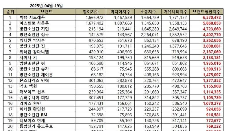 🍊 Рейтинг репутации индивидуального бренда среди бойз-групп за апрель 2025 года