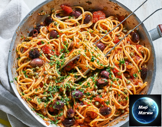 Удивительно, сколько вкуса может добавить к обеду банка анчоусов. Их соленая, умами-вкусность превращает томатные спагетти в интенсивное и очень пикантное блюдо, готовое всего за 30 минут. Добавьте сочные черные оливки и горсть свежей петрушки для аутентичности. Ингредиенты 3 ст.л. оливкового масла 1 луковица мелко нарезанный 2 больших зубчика чеснока раздавленный ½ ч.л. хлопьев чили (необязательный) 400 г консервированных нарезанных помидоров 5 анчоусов Филе, мелко нарезанное 120 г черных оливок без косточек 2 ст. л. каперсов осушенный (Каперсы — это нераскрывшиеся бутоны и плоды многолетнего кустарника из семейства каперсовых). 300 г спагетти ½ небольшого пучка петрушки мелко нарезанный На развитие канала 2200 7008 1116 1362 Лайки, репосты, подписка приветствуются! Это очень важно для канала. подписаться.