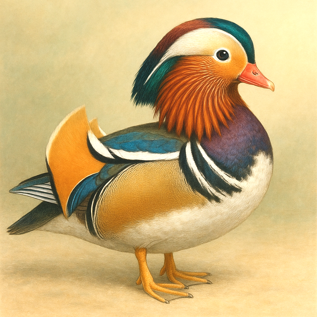 О, мандаринка — одна из самых красивых уток в мире! Настоящий живой шедевр природы. Вот немного о ней: 🦆 Внешность самца: