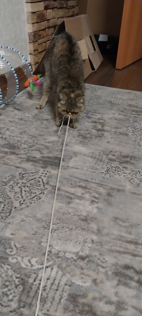 Девочка у нас такая фантазёрка, что ей ни дай, из всего приключение сделает. Вот, на глаза ей попалась веревочка, точнее, шнурок. Думаете, она его в ботинок завязала? Как бы не так! Да и зачем кошке ботинки? Шнурок кошке просто жизненно необходим для игры. Например, можно представить, что это веревочный мостик над пропастью и осторожно пройти по нему. - Куда ползёшь, червячок? - Девочка ни за что не отпустит веревочку. Одним коготком удержит. А будешь тянуть, так, зубами схватит и начнёт, как канат перетягивать. Забавно со стороны смотреть. В общем, с этой кошкой точно не соскучишься. А ещё она очень добрая. За это мы её и любим😺