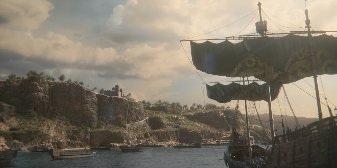 На роль КДПВ стартового эпичного кадра выбрана гавань сухого жаркого региона а-ля Ближний Восток. Оказывается, что это местный Мадагаскар, где пираты устроили себе базу и место переговоров. ВНЕЗАПНО Рагаван! Впервые прозвучала мысль: Ланнистеру сесть на железный трон. Но он отнёсся скептически Регент зелёных сжёг какой-то город (не Драконий ли камень, из финала прошлой серии? 🤔) и смотрит с удовлетворением Начальник ФСБ докладывает об осложнении оперативной обстановки.