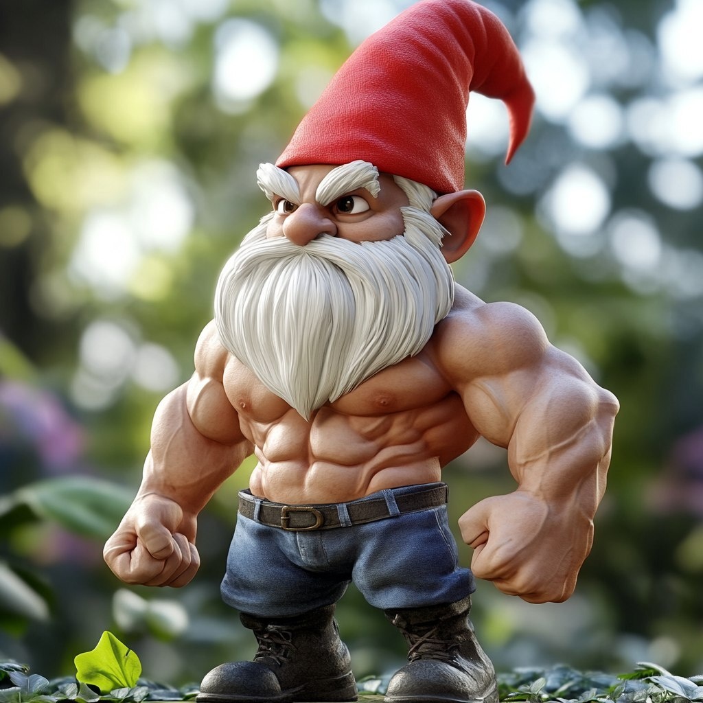 Создано на основе запроса: animated insanley buff muscles garden gnome male cartoon style