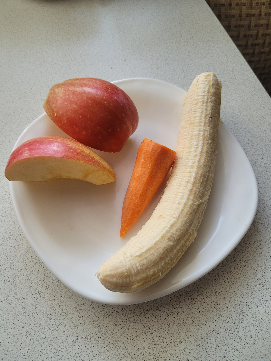 Завтрак девочек. Сегодня дома только девочки, потому что наш мужчина остался с ночёвкой у бабушки. И что же первым делом девочки любят погрызть.... Конечно же морковку.