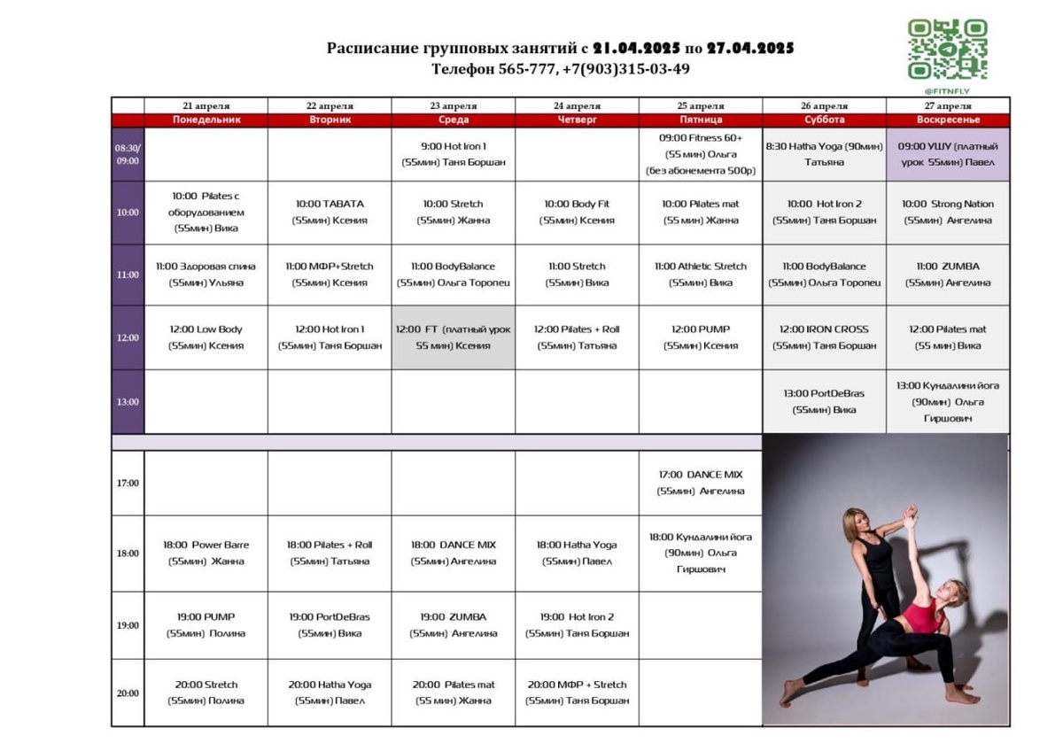 ⏩ Расписание групповых занятий с 21.04.25 по 27.04.25