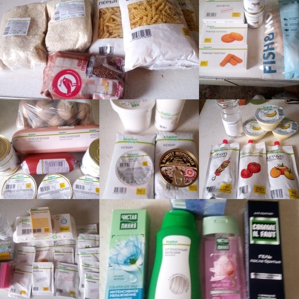 Всем здравствуйте😊 Решила поделиться своими покупками. Когда ездили на прошлой неделе в Солнечногорск, решили закупиться продуктами. В своё время я жила в Клину, работала в городе, а жила за городом. И каждый раз после работы перед автобусом заходила в Ашан на вокзале купить покушать. Честно, я жила очень экономно и поэтому старалась брать что-то по акции. Поэтому и предложила мужу закупиться в Ашане. Сначала сходили по делам и в конце зашли в Ашан. Фото делала уже дома, чек плохо пропечатался, но коллаж сделала. Что от себя скажу. Взяли много товаров по акции на пробу. Порадовали паштеты по 29 р, десерты по 22р. Из котлет понравились Домашние за 89р, все котлеты по 6 шт в коробке. Люблю кетчупы из Ашана, особенно Болгарский, все кетчупы по 32 р. Майонез взяли ведро 800 гр. 159р. Часто брала там приправы разные по 5р, пачки маленькие, но когда готовлю- комбинирую их. Макароны и крупы - само собой! Причём, муж заметил, что если Магнитовская пачка макарон за 20 р нам на троих на о