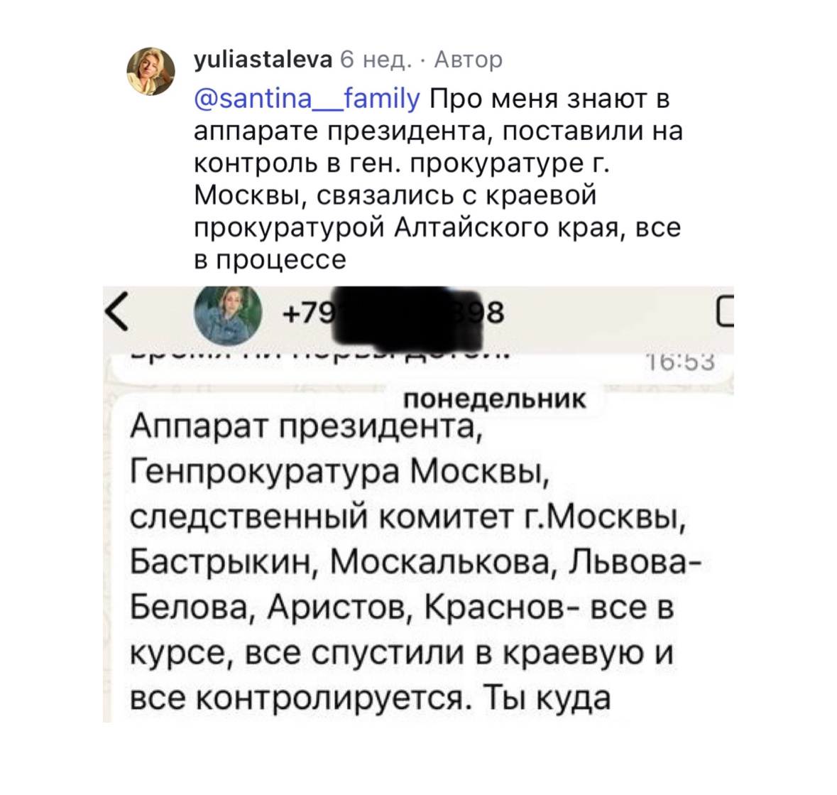 Мать детей, Юлия Сталева неоднократно говорила в СМИ и мне о том, у нее везде есть связи и возможность надавить на меня. Не знаю как происходит её взаимодействие с госструктурами, но я вижу результат этого взаимодействия.