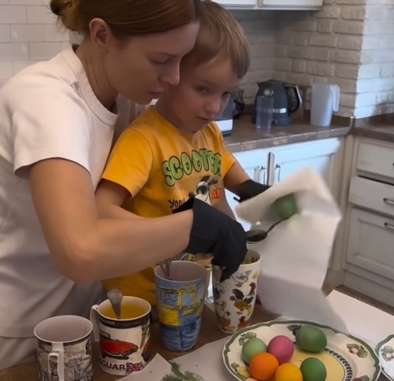 «Красим яйца» : Наталья Подольская поделилась трогательными кадрами с сыном