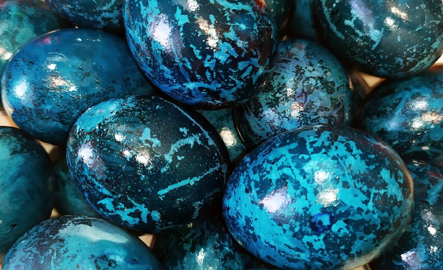 Покраска яиц с помощью лепестков чая каркаде, при которой яйца получаются красивыми, как космос. Краска для яиц из каркаде – отличный природный способ получить яркие и красивые оттенки. Вот как сделать мраморные пасхальные яйца: