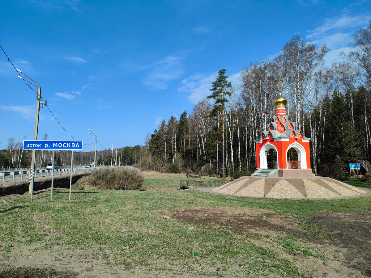 Удобно заезжать по дороге "из Москвы". Площадка с часовней, символическим "первым" мостиком через реку Москву. Хотя на самом деле сам исток с другой стороны дороги. Площадка для отдыха. А мы едем дальше.