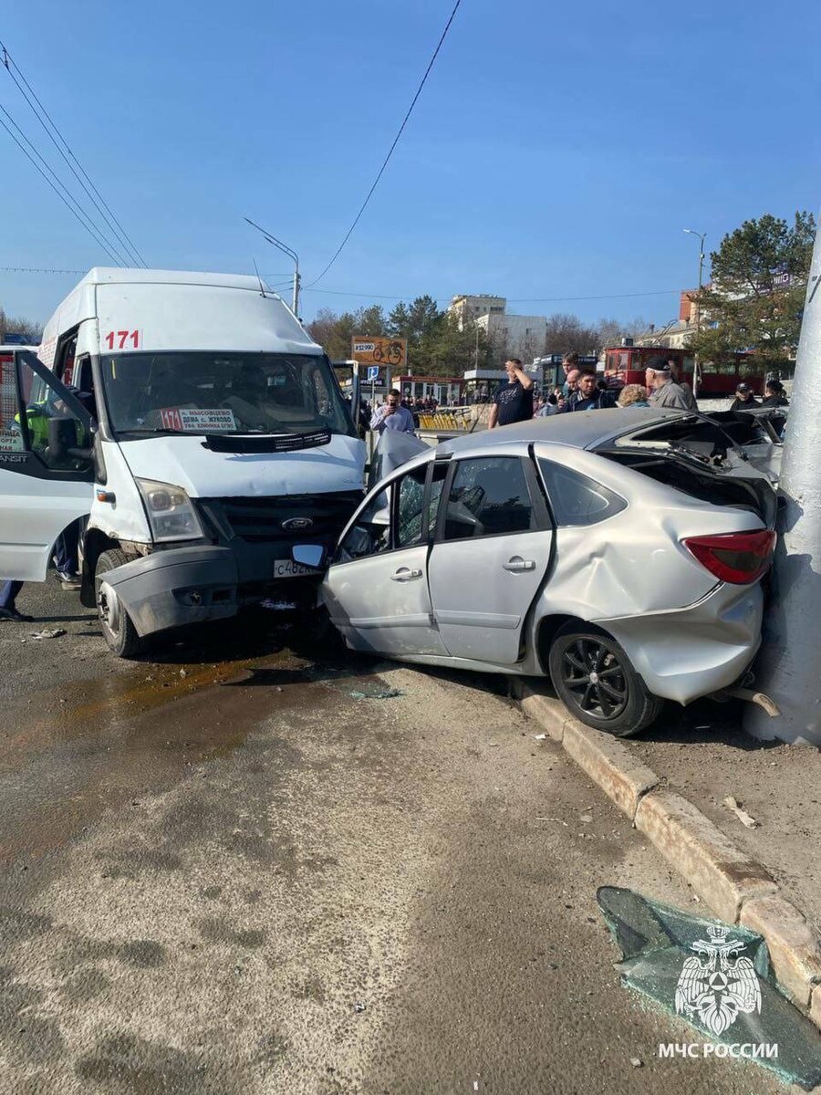 ДТП произошло около 10 часов утра на проспекте Октября близ остановки «Универмаг Уфа». В Уфе на проспекте Октября вблизи остановки «Универмаг Уфа» случилось дорожно-транспортное происшествие с участием двух легковых автомобилей и маршрутного автобуса Ford Transit, который двигался по маршруту 171. По неизвестной причине автобус потерял управление, выехал на полосу встречного движения и ударил стоявшие на обочине автомобили. В результате столкновения водитель маршрутки и три его пассажира доставлены в больницу. Врачи оценивают их состояние, как средней степени тяжести. На месте происшествия работают сотрудники МЧС России. По предварительной версии водителю стало плохо прямо за рулем. Прокуратура республики заявила о начале проверки по исполнению законодательства об организации пассажирских перевозок, в том числе в части обеспечения требований безопасности при эксплуатации транспортного средства. Фото МЧС России по РБ.