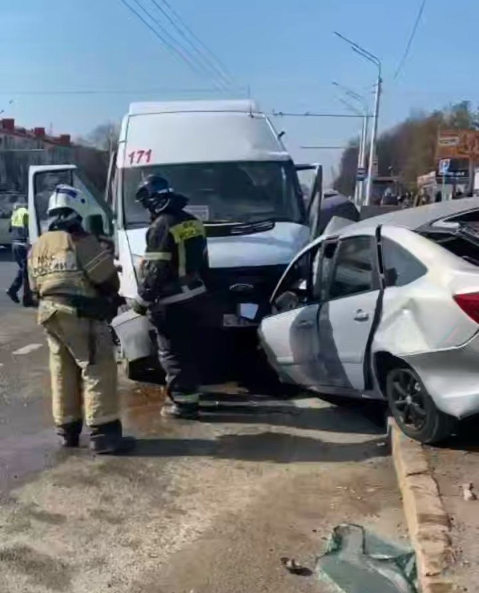В Уфе маршрутка с пассажирами вылетела «на встречку» и протаранила несколько легковушек