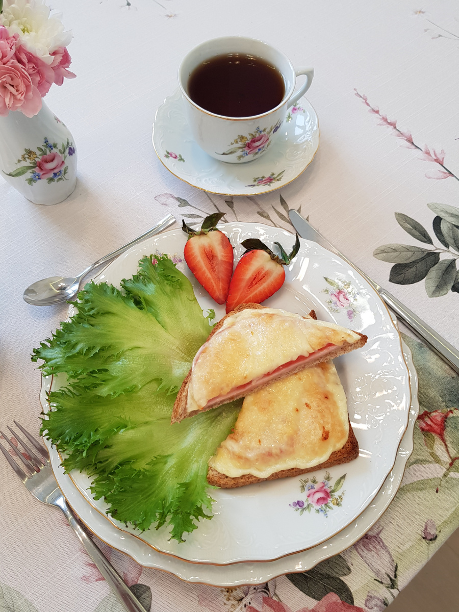 Доброе утро, дорогие друзья! В Сибири в эти выходные настоящее лето, и поэтому предлагаю быстрый и ароматный завтрак, способный порадовать мужчин любого возраста и, конечно, детей! Для приготовления 9 бутербродов нам понадобятся: 360 грамм (9 ломтиков) хлеба с отрубями, 297 грамм (9 ломтиков) сыра Тильзер, 297 грамм (9 ломтиков) ветчины из индейки, 297 грамм (9 ломтиков) розовых томатов, 27 грамм оливкового масла. Приготовление: нарезать слайсером ветчину. Я нарезаю сразу всю ветчину, чтобы можно было брать уже нарезанную из холодильника несколько дней. Нарезать слайсером сыр. Так же, как и ветчину, можно нарезать побольше. Нарезать слайсером помидоры. Помидоры, на мой взгляд, не стоит хранить нарезанными, поэтому нарезаем только 9 ломтиков. Выкладываем хлеб на противень, застеленный пергаментом. Хлеб у меня куплен уже нарезанный. Наносим на хлеб немного оливкового масла. Раскладываем на хлеб ветчину. На ветчину раскладывает помидоры. На помидоры раскладываем сыр. И запекаем 15 мину