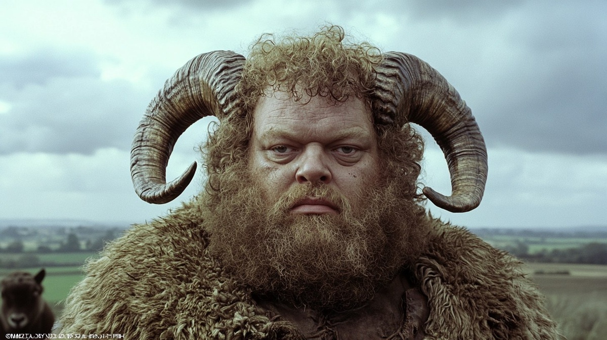 Создано на основе запроса: a single frame from a 1980s dark fantasy film, a fat man with a beard and ram horns, curly hair and fur, center frame, looking calm, farm countryside background, morning, grey clouds skies --- Автоперевод: Один кадр из фильма Dark Fantasy 1980 -х годов, толстого человека с бородой и рогами из баранов, вьющимися волосами и мехом, центральной рамой, выглядящим спокойным, фермерским фоном, утренним, серым облаком небо. Какое твое впечатление? 🤔 https://dzen.ru/id/65c0c65c86e4f837c27b24d7 #ИИ #AI #нейросеть #midjourney #art