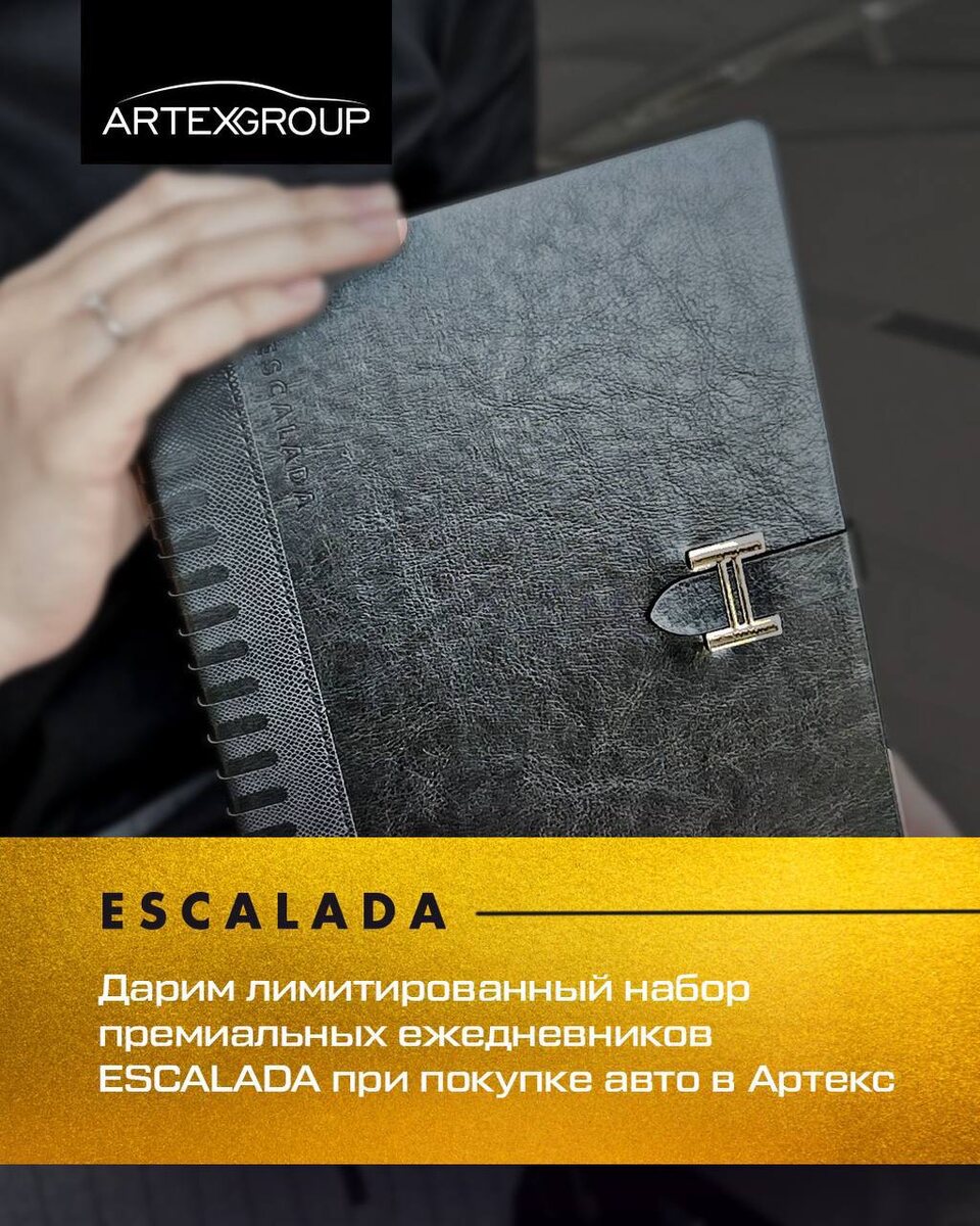 АРТЕКС и ESCALADA: Приготовьтесь поднять свои ощущения на новый уровень🔝 Эксклюзивное сотрудничество, в котором встречаются роскошь, стиль и совершенство😌 🎁 Каждому покупателю нового автомобиля Артекс дарит лимитированный набор премиальных ежедневников ESCALADA* Это больше, чем подарок. Это — символ. Символ вашего вкуса, статуса и внимания к качеству. Успешные люди думают на бумаге и покупают автомобили в АРТЕКС. *Количество подарков ограничено.