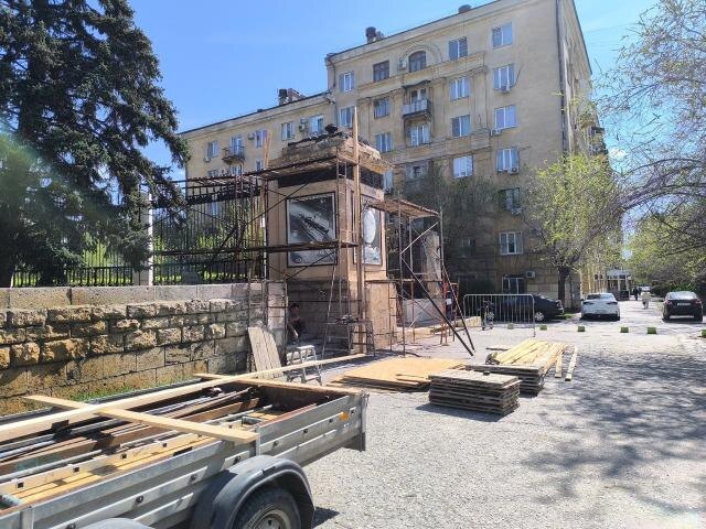 В Волгограде на в входе в Звездный дом готовят новую экспозицию, посвященную 80-летию Победы в Великой Отечественной войне. Фотовыставка «Космический пантеон славы» разместится на тумбах, которые служили опорами для двух глобусов Земли. В настоящее время строители «зашивают» каменные колонны листами ДСП. Они и станут полотном для новой экспозиции. Как рассказал директор планетарий Олег Виноградов, выставка расскажет об астероидах, названных именами героев Великой Отечественной Войны. На обеих колоннах разместят портреты фронтовиков. Также на них будет нанесен Q-код, который перенесет посетителей выставки на информацию как о героях, их подвигах, так и об астероидах. - Мало кто знает, что множество астероидов хранят память о героях Великой Отечественной войны, в том числе о защитниках Сталинграда, - подчеркнул Олег Виноградов. – Также есть астероид, названный в честь Дня Победы и в честь нашего героического города – Сталинграда. Обо все этом можно будет узнать на выставке под открытом не