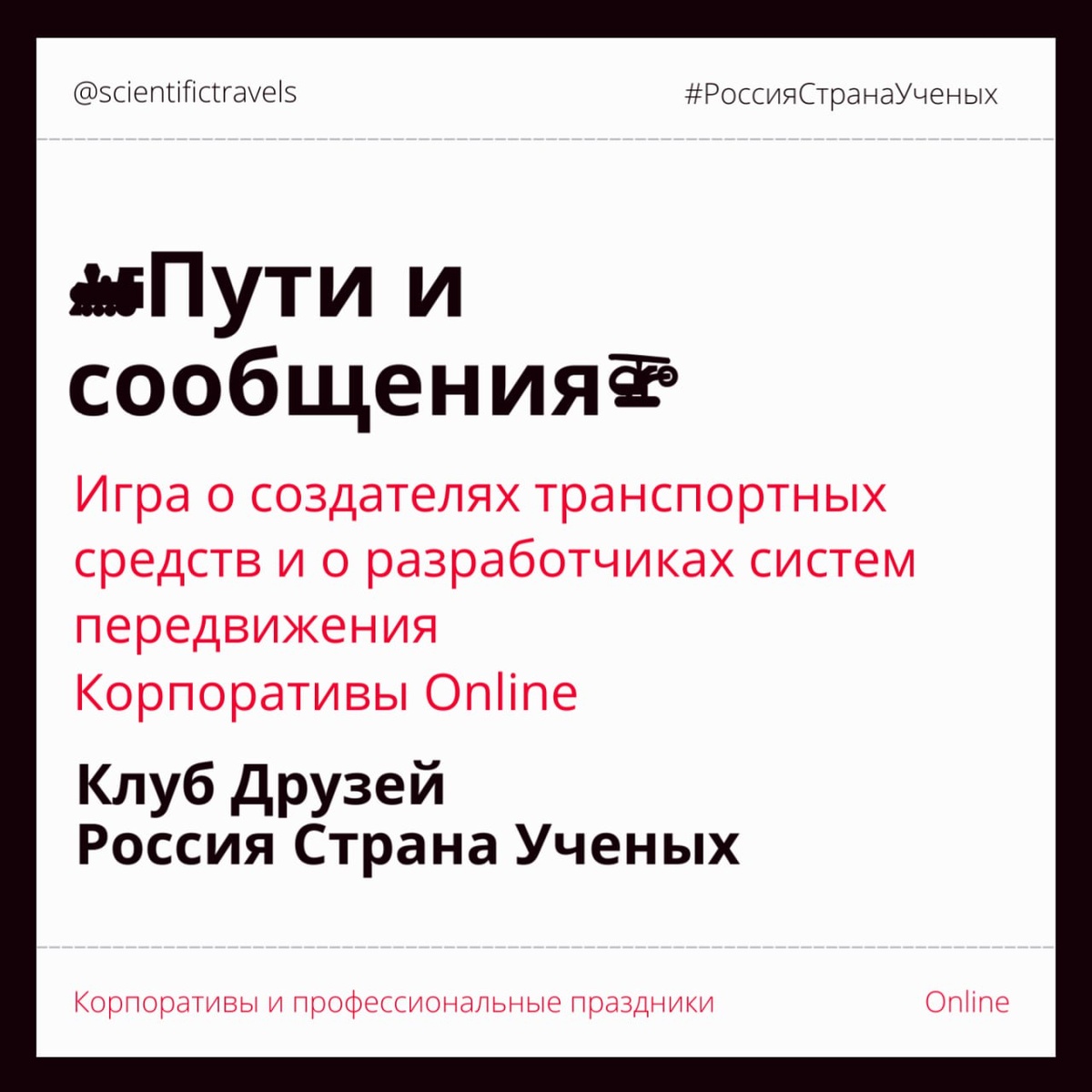 ❤️Корпоратив, день рождения, тимбилдинг и профессиональный праздник оnline ❤️ ❤️Всем участникам выдаются сертификаты Клуба Друзей проекта Россия Страна Ученых❤️ Сейчас у нас готовы следующие игры: ❤️Queen of Hearts Games❤️ Игры Красных Королев Математические Игры 💊Химические Злодеи💎 Игра о реально плохих мальчиках и девочках в химии 📚Звезды Краеведения🌍 Краеведы - новые рок-звезды! Игра о топ-личностях 💥Москва Лженаучная💥 Столица анти, пара и мета-науки! Игра о лженаучных концепциях в Москве 🌠Космос и Космисты🔭 Игра о философах и практиках космических индустрий в России и за рубежом 🎬Научный кинематограф🎬 Игра о фильмах, студиях, авторах, предпосылках и феноменах научного кино 💸Думали о деньгах🏆 Игра об ученых, философах и практиках финансового сектора 🚂Пути и сообщения🚁Игра о создателях транспортных средств и о разработчиках систем передвижения 🌷Биология и биологи🧬 Trust me, I'm a Biologist! Игра об истории биологии и смежных дисциплин Примеры вопросов тут 📚
