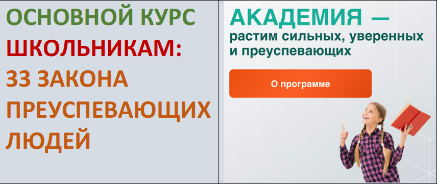 Основной Курс 2. 🔥 «Школьникам: 33 закона преуспевающих людей» 💎 Это уникальный и единственный в своем роде курс. Курс ориентирован на формирование сильных, уверенных и конкурентоспособных молодых людей, готовых успешно справляться с вызовами современного мира. Курс раскрывает ключевые законы успешных людей, адаптируя их для подростков. Слушатели Академии изучат законы, которые помогут им выделяться среди сверстников, эффективно организовывать свое время, развивать лидерские качества, расширят кругозор возможностей, направят на решение амбициозных целей и задач. 👉 Что в итоге получат слушатели Академии? ✅ Изучат законы успешности от великих людей. ✅ Освоят секреты эффективного тайм-менеджмента, позволяющих успевать и сделать больше. ✅ Разовьют навыки лидера, уверенности в себе. ✅ Поймут свою уникальную роль в мире и займут в нем достойное место. ✅ Раскроют и разовьют свои сильные стороны и скрытые таланты. 🌟 Обращение к школьникам: Присоединяйтесь к Курсу и станьте теми, кто способ