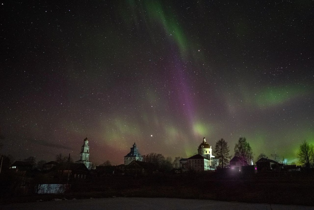 Панорама ночного неба над Великорецкими храмами