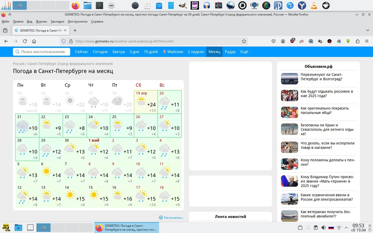 По Гисметео вчера был последний приличный день когда в дому можно было посидеть с открытым балконом. На Пасху температура здорово свалится и весь этот месяц будут дожди. Будь я, как раньше, огородником, я бы наверно сильно переживал по этому поводу, Но теперь мне переживать и совсем уж не с чего. А коляска и дома постоит. В дождь на ней очень уж неуютно. Теперь возникает вопрос а стоит ли её вытаскивать. Обещают сплошь дожди, а мокрые колёса дома это совсем не то, чего бы мне так уж сильно хотелось. В принципе к концу месяца погода вроде собирается стать достаточно тёплой, но до мая я похоже просижу дома.