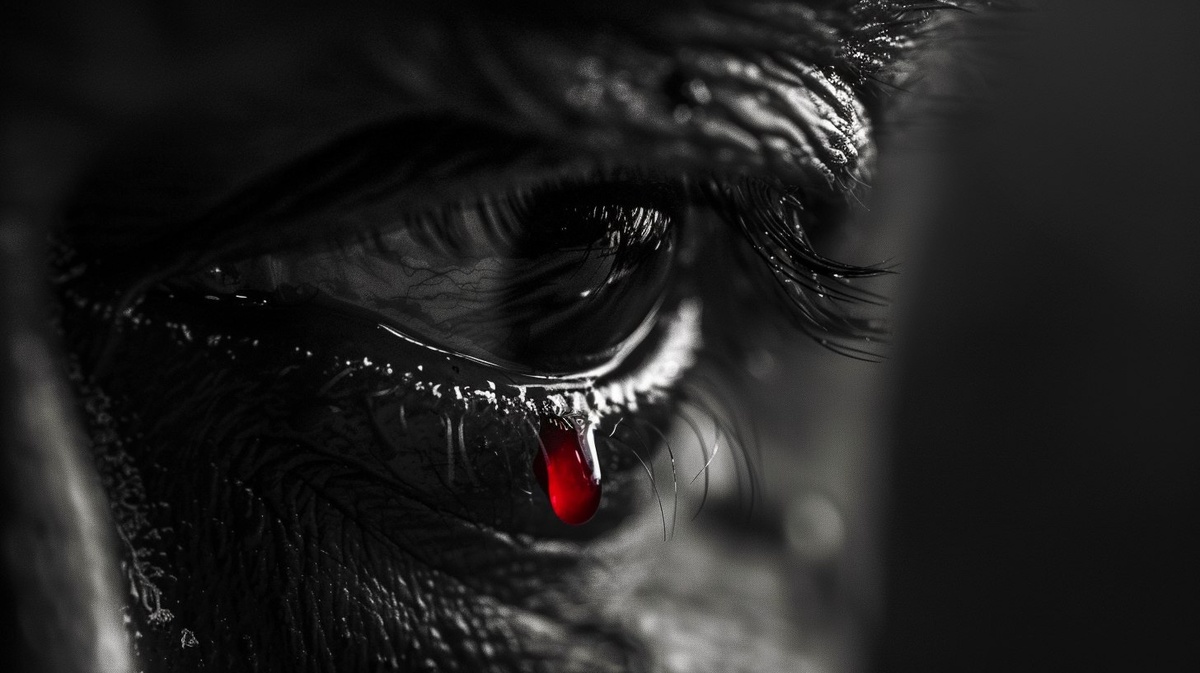 Создано на основе запроса: A macro close up view of a man's eye that is made of dark marble stone. There is a very small single red droplet dripping from the dark marble stone eye. The background is a blank black screen for compositing. Background is pitch black dark. Colors are black and white. cinematic lighting, silhouette shadows, camera is RED Komodo 6K, deep shadows, deep contrast of light and dark, moody tone --- Автоперевод: Макро -крупный обзор человека глаз, который сделан из темного мраморного камня. Отлично выглядит? 🤔 https://dzen.ru/id/65c0c65c86e4f837c27b24d7 #ИИ #AI #нейросеть #midjourney #art