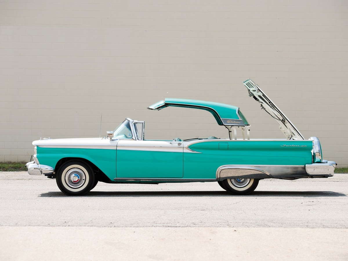 Один из самых помпезных и грандиозных хардтоп-кабриолетов увидел свет в 1957 году и выпускался до 1959-го. Тираж — немалые 48 394 экземпляра, что не слишком вяжется с его антуражем: может показаться, что перед нами штучный товар для редких ценителей. Огромные размеры (длина — 5354 мм, колесная база — 3000 мм) оказались хороши не только для дизайна — они позволили разместить сложный навороченную конструкцию привода жесткой складной крыши. Инженеры не стали использовать гидравлику и, что называется, отожгли — применили систему Hide-Away Hardtop с электромоторами, специальными домкратами, соленоидами, механизмами блокировки крыши и багажника и другими компонентами.