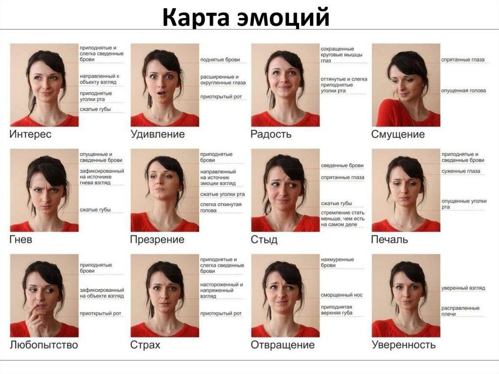 🔍 Интерес Брови слегка приподняты, губы напряжены, взгляд сфокусирован. Это как «я вижу, и я хочу понять». Часто — начало контакта, начало узнавания. 😲 Удивление Глаза округлены, рот приоткрыт. Лицо как открытая книга: «Вот это да!» Эмоция без оценки. Это просто «что-то случилось». Удивление часто стоит первой — за ним приходит страх, радость или злость. 😊 Радость Те самые «улыбка глазами». Сокращены мышцы вокруг глаз, уголки губ — вверх. И как будто всё лицо говорит: «Мне хорошо». Не обязательно громкая. Радость бывает нежной. 🙈 Смущение Голова опущена, глаза в сторону. Неловкость — как будто хочешь исчезнуть на секунду. Это не слабость. Это сигнал: «Я понимаю, что что-то не так — и мне важно, как ты это воспримешь». 😡 Гнев Брови сведены, взгляд твёрдый, губы сжаты. Энергия действия: «Я не согласен, это важно, и я не позволю». Гнев — граница. Он нужен. Но если неосознан — может ранить. 😒 Презрение Голова чуть откинута, рот сжат, взгляд сбоку. Эмоция сверху вниз: «Я выше, ты