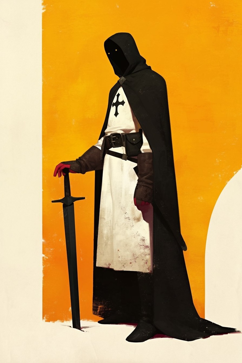 Создано на основе запроса: D&D character, medieval paladin in a grey characteristic quilted hood and tunic divided into four fields. Welding a Sword. Full body visible, style of Martin Grip, style of Richard Anderson. Light background, isolated. pale palette --- Автоперевод: Персонаж D & D, средневековый паладин в сером характерном стеганом капюшоне и тунике, разделенной на четыре поля. Классно вышло? 🤔 https://dzen.ru/id/65c0c65c86e4f837c27b24d7 #ИИ #AI #нейросеть #midjourney #art