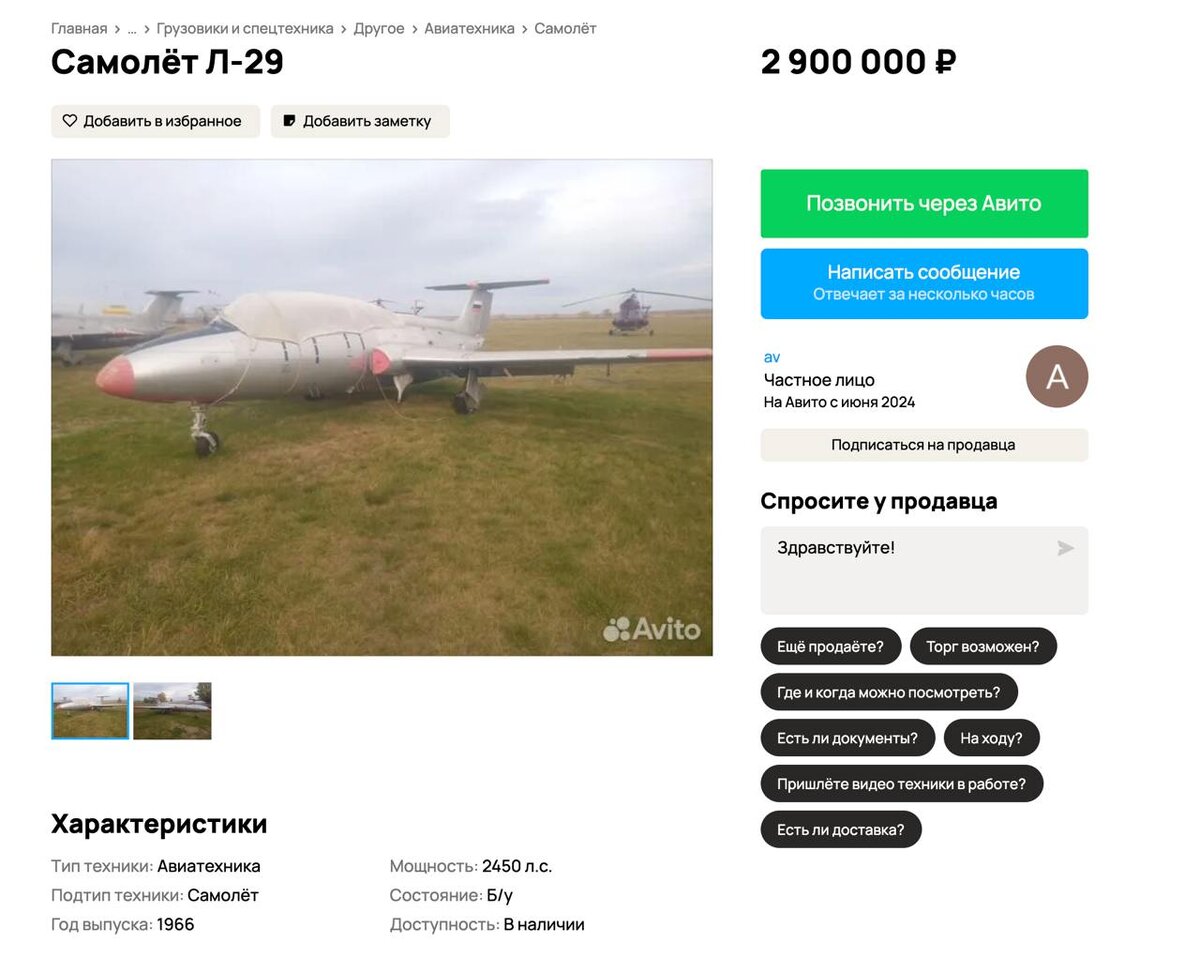 Это тот самый «Дельфин», на котором учились летать тысячи советских пилотов. В Омске на продажу выставлен 60-летний учебно-тренировочный самолет Л-29. Чехословацкий самолет известен быстрым обучением – уже через 13 часов, проведенных за штурвалом, курсанты становились самостоятельными пилотами. Теперь любой омич может прикоснуться к истории авиации, заплатив за уникальный аппарат 2,9 млн рублей. Предложение опубликовано на сайте объявлений «Авито». Продавец подчеркивает, что некогда Л-29 «Дельфин» являлся широко используемым учебным самолетом, на котором научились летать тысячи будущих советских авиаторов. После обучения на этом самолете будущие пилоты получали допуск к управлению значительно более сложными машинами, поскольку Л-29 готовил специалистов для последующего перехода на такие самолеты, как сверхзвуковой истребитель МиГ-21. Для решения учебных задач самолет обладал всеми необходимыми характеристиками: мощный реактивный двигатель M-701c-500 с силой тяги 890 кг позволял поднима