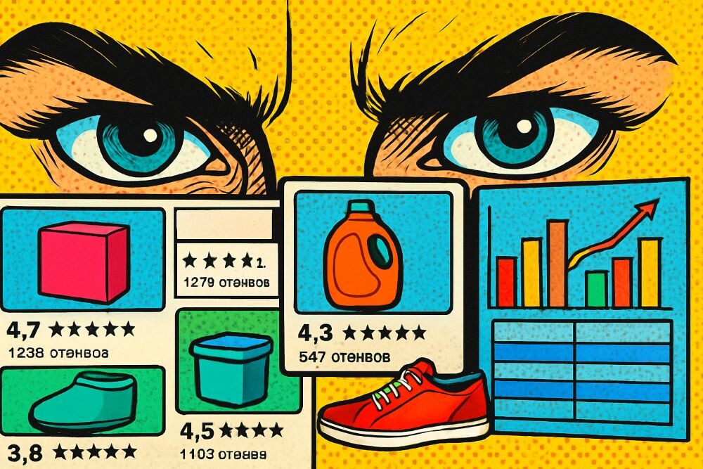 https://t.me/TenYearsOnWB Вот ты заходишь в нишу. Кажется, всё красиво: конкуренты с рейтингами 4.8, фотки нарядные, отзывы хвалебные. Но почему-то у одного — 200 заказов в день, а у другого — 12. Хотя внешне они как близнецы. Где логика? В метриках. В воронке. В деталях, которые никто не видит, но которые решают всё. Почему анализ конкурентов — это не «посмотрел и понял» Потому что карточка — это айсберг. Видишь фотку, цену и отзывы. Не видишь: CRP, CTR, структура трафика, склады, ключи, по которым заходит народ, объёмы раздач, работу с отзывами, доработку размеров, динамику рекламы. Тот, кто делает только поверхностный осмотр, — как покупатель,