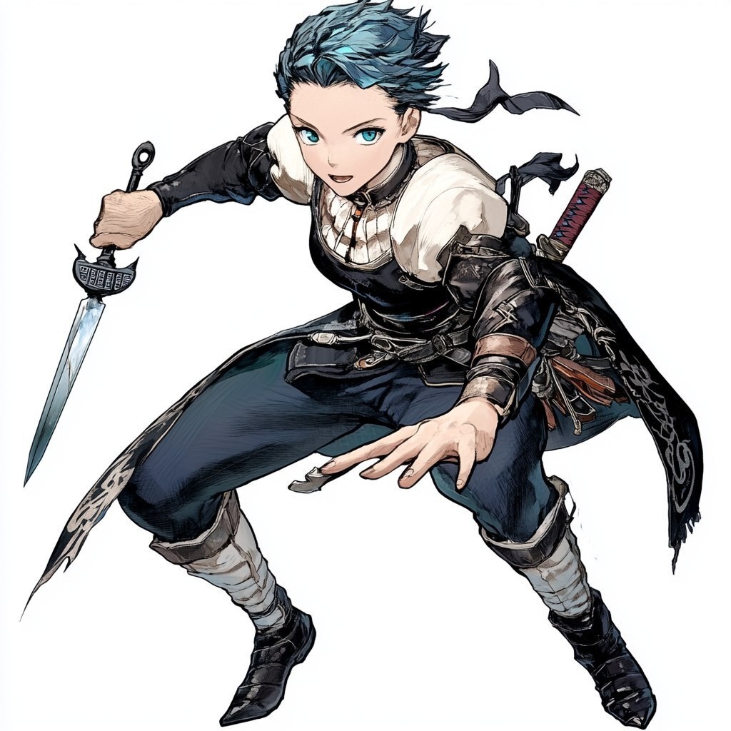 Создано на основе запроса: Fantasy concept illustration, Female, Human, Mage-Priestess, Short aqua blue hair, Cyan eyes, Two canoval daggers, Calculator, Mysterious, Heavy leather armour, Octopath traveler style, White background, High quality, Exaggerated fighting pose --- Автоперевод: Фэнтезийная концепция иллюстрация, женщина, человеческая, мага-пирожка, короткие аква-голубые волосы, голубые глаза, два кинжала кановала, калькулятор, таинственные, тяжелые кожа Как тебе такая иллюстрация? 🤔 https://dzen.ru/id/65c0c65c86e4f837c27b24d7 #ИИ #AI #нейросеть #midjourney #art