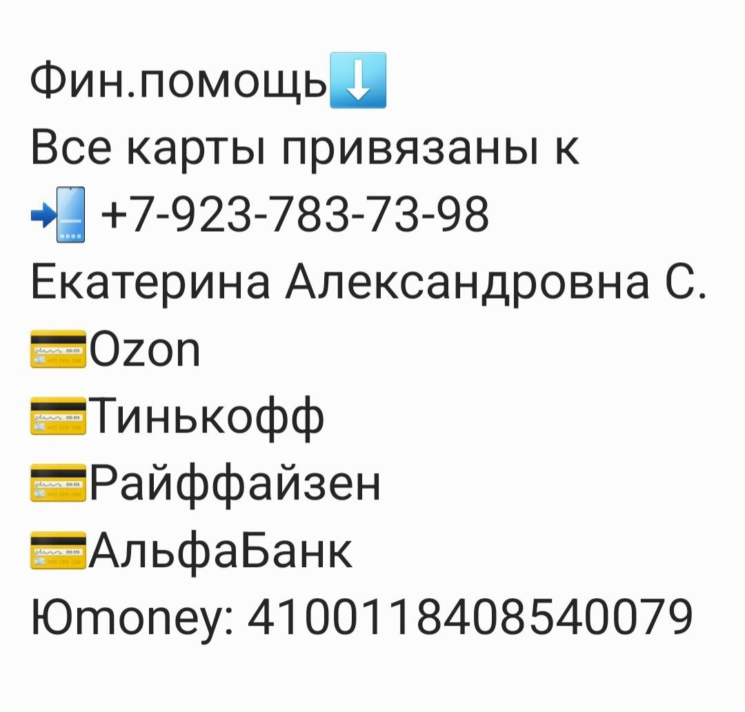 Друзья, мне очень нужна ваша помощь 🙏🙏🙏 Через 14 дней мне оплачивать аренду, электричество и воду, это 98'000р. Мне ежедневно давать лекарство Тузу, Варваре, Блейку, Ромео, Барону, Мухтару, Чернышу, а все эти лекарства стоят денег и не маленьких😔😔😔 Сегодня лапка Туза опять не очень , возможно поедем на стационар😭 27 апреля будет операция у Черныша, на неё нужно было собрать 80т.р, мы собрали 10750р. И хотели деньги, оставшиеся после сбора на Туза, потратить на Черныша,но эти деньги Туз решил потратить их на себя 😔 Так же нужно покупать корм😔 В общем без денег нам ну никак ,и никак нам без вашей помощи 😔😔😔 С уважением, ваше Простоквашино ❤️