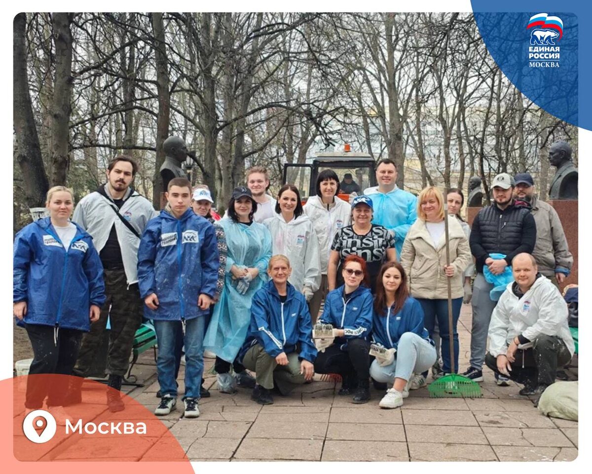 🇷🇺Более полусотни активистов «Единой России» из ЮВАО приняли участие в субботнике на территории военного госпиталя им