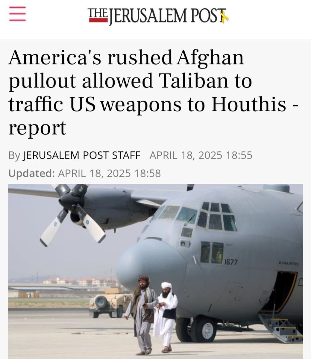 The Jerusalem Post сообщает, что из-за поспешного вывода войск США из Афганистана талибы начали переправлять оставленное американское вооружение хуситам.