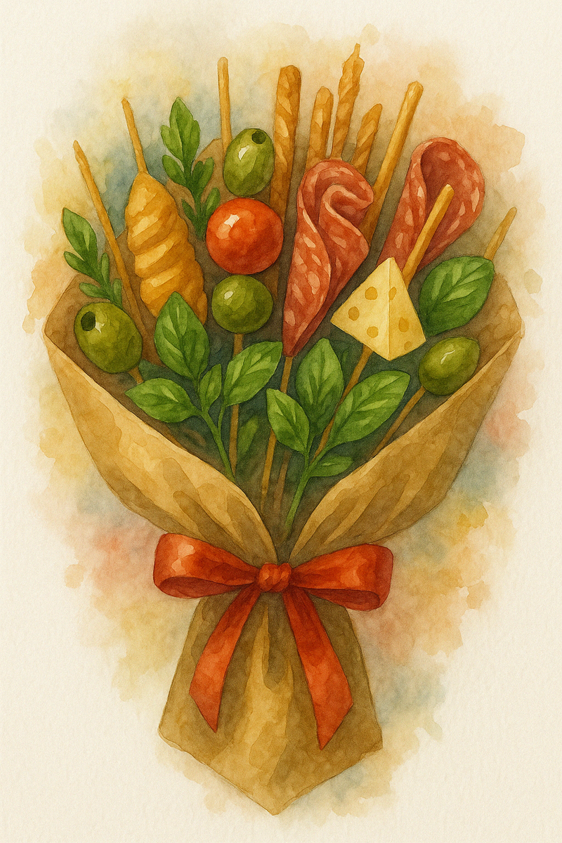 Идеальный съедобный букет — это не только красота, но и баланс вкусов: солёного, сладкого, острого и нежного.