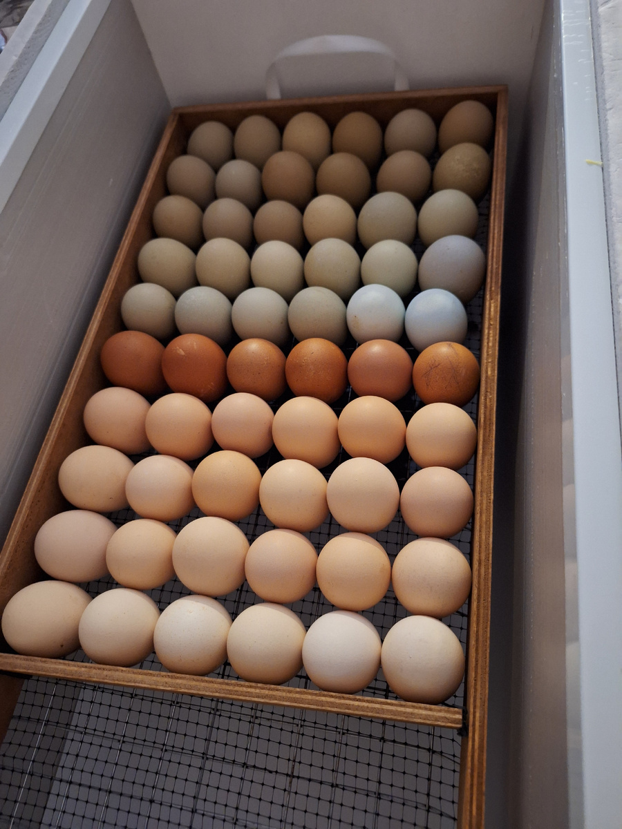 Буквально три дня назад у меня закончилась инкубация яиц, не очень удачная, но пока меня такая инкубация устроила. На май месяц заказала яйцо из генофонда две породы, поэтому надо было срочно закладывать яйцо. Как говорится, инкубатор надо обкатать, все ошибки предыдущей инкубации учесть ,чтобы по возможности получить всё-таки хорошую выводимость. Поэтому заложила своё яйцо. Отбирала яйцо разное. Прошлые разы я своё яйцо старалась поменьше ложить цветного, то есть зелёного и болотного. А теперь решила-а почему бы и нет. Амерауканы у меня не пойми какие, покупала яйцо вроде амерауканов, но выводились всякие. Говорят, что должно быть голубое яйцо, у меня в основном яйцо болотное и зеленое, но тоже ближе к болотному. Но вот что я заметила-когда мои остальные курочки уходят в линьку, то мои зеленояйцевые куры продолжают нестись. Вроде и облезные и голые, а яйцо дают ,как обычно. Так что же я от них отказываюсь? И вот на этот раз решила положить побольше цветного яйца. Инкубатор на 80 яиц