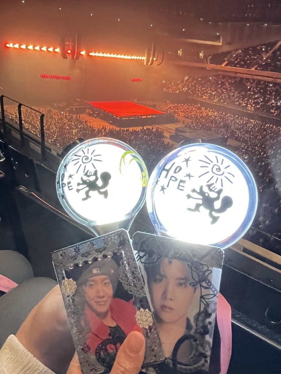 Добрый день. Это "Магия Азии" и яШа. Новости сегодня не самые веселые, мы наврядли увидим стримы концертов Джей-Хоупа из Сайтама, Япония. Правилами строго запрещают съемку в зале, и зрители следуют правилам - лишь пара фотографий из зала появились в сети. Но зато АРМИ активно делились полученными картами, подарочками и билетами до начала концерта. Рассказывали, что даже погода с приездом Хоби наладилась и перед концертом весь день было тепло и солнечно. Сегодняшние концерты проходят в Saitama Super Arena в Сайтаме, вместимостью 37000 мест. И конечно же, все билеты распроданы. Но есть у нас один отважный очевидец, находящийся на стадионе, который поделился с нами кадрами с саундчека. И я говорю о Хобушке - он как всегда снял свой выход к АРМИ. По рассказам обладателей VIP-билетов, кто присутствовал на саундчеке, как и во все разы до этого на исполнении третей песни Хосок спустился в зал и "дал пять" зрителям в первом ряду. Постоянство - залог успеха. А еще с японскими фанатами на саунд