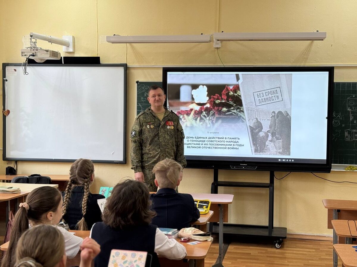 Память сильнее времени🕯️ 19 апреля — День единых действий в память о геноциде советского народа. Вчера в нашей школе состоялась важная встреча шестиклассников с Алясовым Александром Робертовичем — педагогом военно-патриотического клуба "Гвардия", участником Специальной военной операции. Александр Робертович выполнял боевые задачи на территории Луганской Народной Республики в составе 2-й Гвардейской Таманской дивизии. Он награждён медалью Жукова и другими ведомственными наградами и знаками отличия. Ребята с большим вниманием слушали рассказы о страшных событиях военных лет. Многие не смогли сдержать слёз, понимая всю тяжесть тех испытаний, через которые прошли наши предки. ✉️ В завершение встречи ученики написали трогательные письма и создали душевные рисунки для будущих поколений. В своих посланиях они призывают никогда не забывать о страшных уроках войны и делать всё возможное, чтобы подобное больше никогда не повторилось. Мы гордимся тем, как серьёзно и ответственно наши ученик