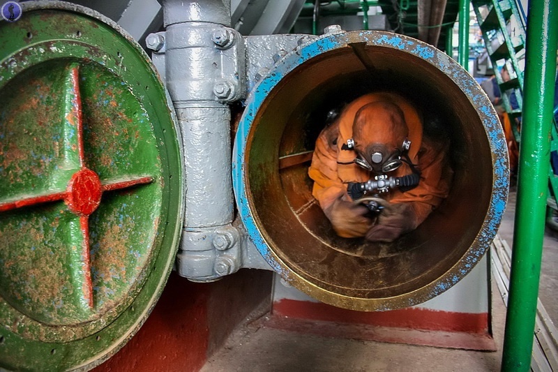 Сегодня мы перенесёмся на Камчатку в знаменитый Вилючинск, где базируются атомные подводные лодки Тихоокеанского флота и покажем несколько стандартных тренировок подводников в Учебном Техническом Центре при этой знаменитой базе. И естественно всё это снято официально, а с тех пор прошло уже много лет. Никаких секретов в этой подготовке нет. Первое упражнение: Условная подводная лодка получила пробоину и члены экипажа, находящиеся в отсеке должны заделать её изнутри. Во все стороны летят брызги. Но подводники справляются с задачей. А как иначе? Переходим к следующему упражнению. Условная подводная лодка потерпела аварию и члены экипажа должны выйти через торпедный аппарат в спасательных гидрокомбинезонах подводника в условное море. При присаживании с костюма через клапаны стравливается избыточный воздух, издавая треск. Далее необходимо преодолеть путь в несколько метров по трубе 533-мм торпедного аппарата. Это конечно легко, только если ты не в таком костюме, стесняющем движение. Но это