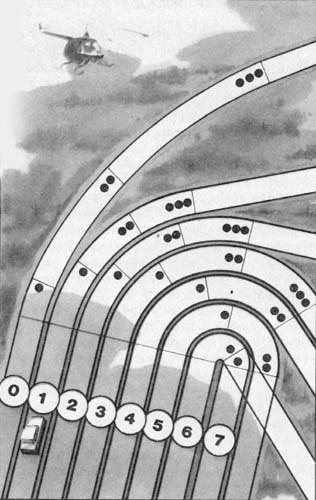 Р3кр д300. Что видим мы? Кто-то сел на клавиатуру и пара клавиш были случайно нажаты. Но что видит штурман? Правый три круто длиной 300. Присаживайтесь поудобнее, мы начинаем. Привет друзья ЖалиНаРалли на связи. И сегодня речь пойдет о поворотах. Как классифицировать их? Какой поворот длинный? Крутой? Давайте разбираться. Для наглядности, взглянем на картинку. Видим номера от 0 до 7. Самый пологий поворот в нашей стенограмме обозначается цифрой 0, самый резкий – 7. А в действительности поворот классифицируются его радиусом. Чем он больше тем положе поворот, а стало быть быстрее. Чем радиус поворота меньше, тем поворот острее и скорость его прохождения будет меньше. Кажется все просто. Но как оценить поворот? мы ведь не можем выйти из машины и бегать с рулеткой замеряя его радиус. Перед своей предыдущей гонкой мы решили серьезнее подготовиться, и я нашел способ: Как руль повернул в поворот – такая его классификация и есть, очень удобно. Однако, иногда поворот бывает «ни туда, ни сюда» н