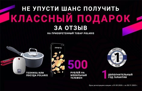 Не упусти шанс получить классный подарок за отзыв на приобретенный товар Polaris.