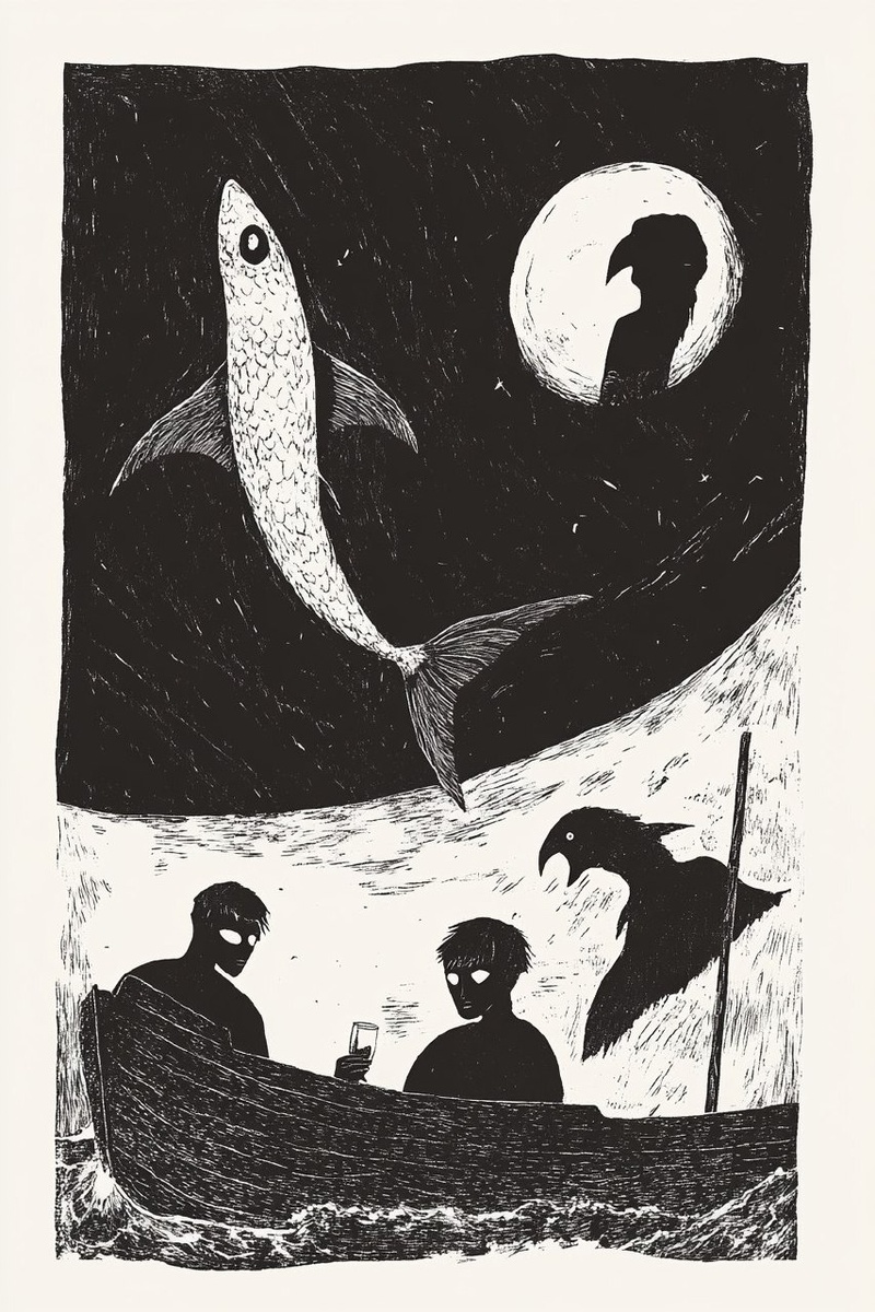 Создано на основе запроса: wood cut style, illustration, two sailors sipping rum in the harbor at the center of the composition, one sailor with the face of a fish and the other sailor with the face of a parrot,black and white , --- Автоперевод: Стиль дерева, иллюстрация, два моряка, потягивая ром в гавани в центре композиции, один моряк с лицом рыбы, а другой моряк с лицом попугая, черно -белого, Хорошо вышло? 🤔 https://dzen.ru/id/65c0c65c86e4f837c27b24d7 #ИИ #AI #нейросеть #midjourney #art