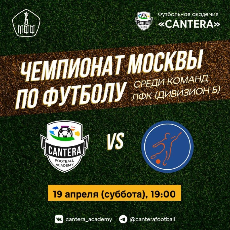 Долгожданный старт Чемпионата МФФ 🔥 Уже сегодня на «Лужниках» (поле №4) начинаем сезон матчем против «Мегасферы»! «Кантеровцы» в полной готовности, настроены на победу и уже в 19:00 выйдут на поле ❤️🔥 VAMOS CANTERA ❤️💛
