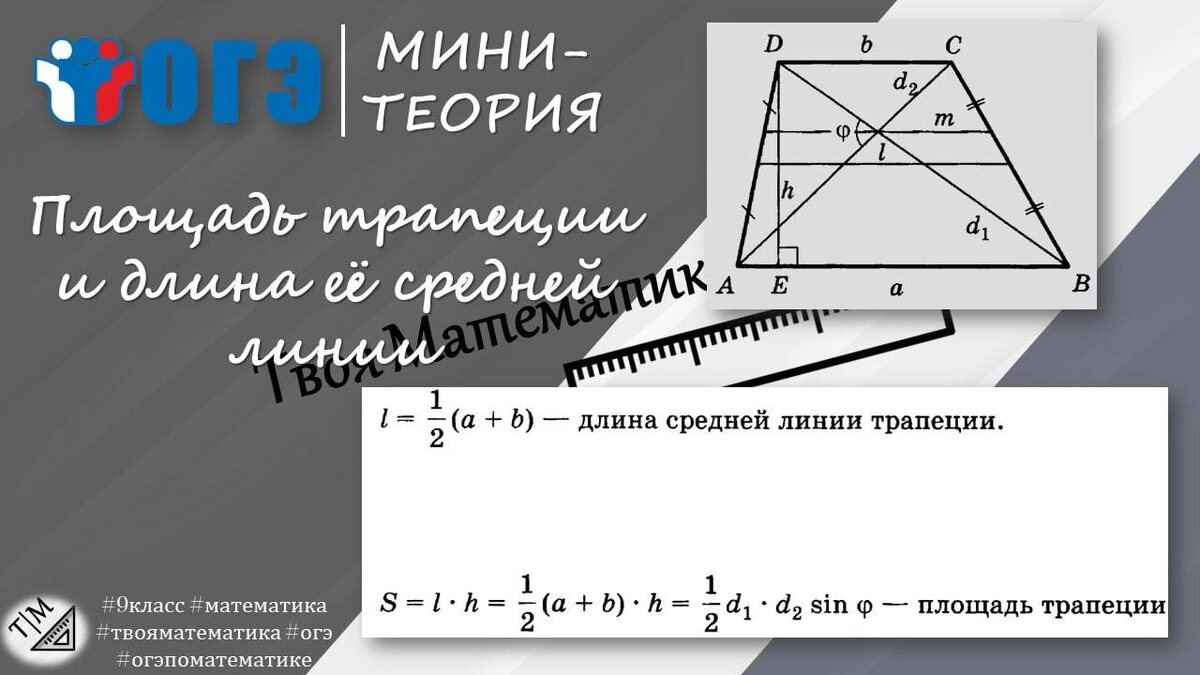 ✂️#твояминитеория 📎Для решения 18 номера 15 варианта ОГЭ 2025 года по математике нужно вспомнить про формулы для нахождения площади трапеции. Выпуск скоро выйдет на канале 🙏🏼. Твой вектор в мир математики! #9класс #математика #трапеция #твояматематика #огэ #огэпоматематике #огэматематика #огэтеория