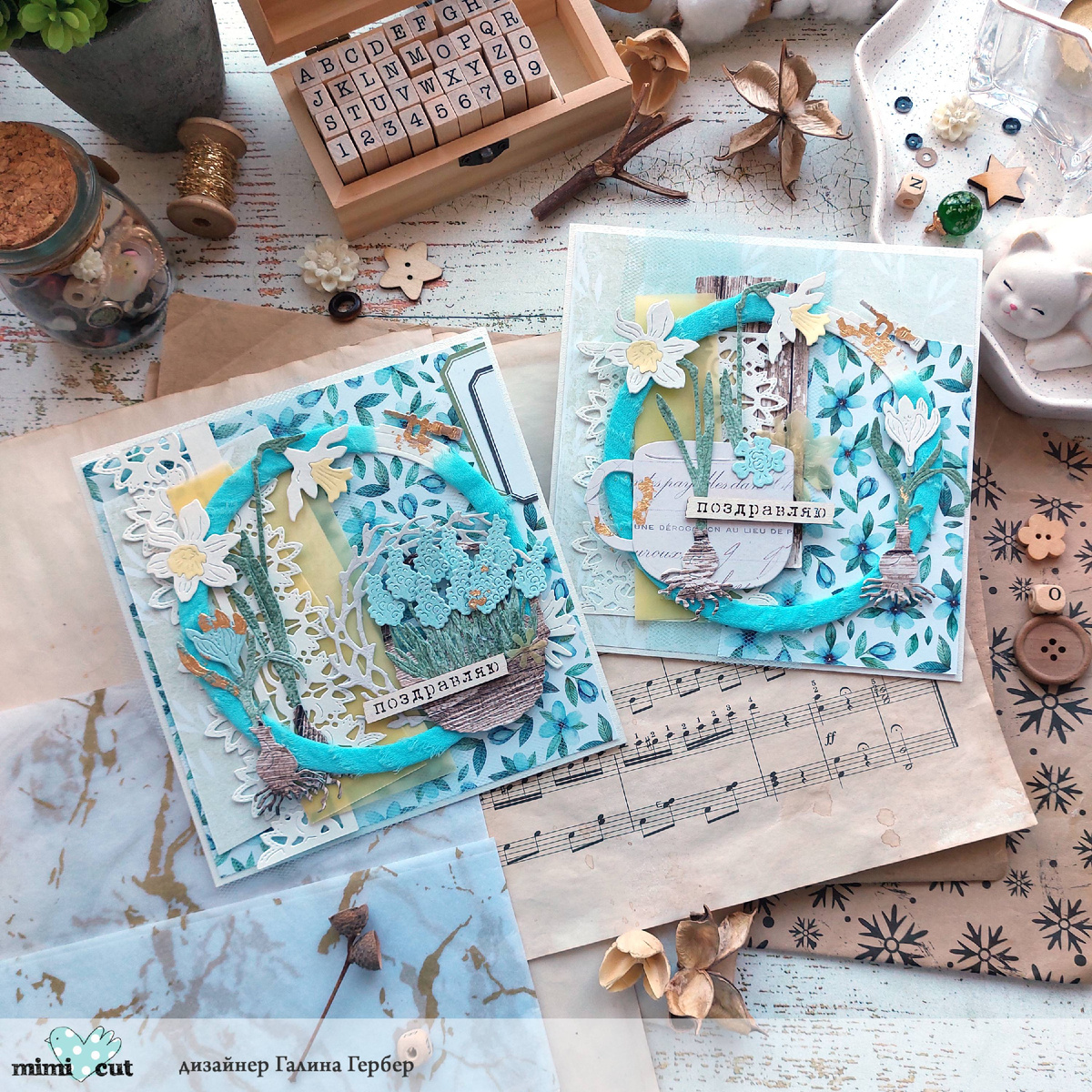 Открытки, которые я делала для Mimicut. В деле наборы ножей "Вершки и корешки", "Лесной чай", "Во саду ли, в огороде", "Ласточкино гнездо", "Возвращение ришелье", "Привет, ромашки" и "Сплету венок". Уж очень мне хотелось усадить эти малютки-цветочки мускари в лукошко из набора "Во саду ли, в огороде"... ... а также в маленькую кружечку из сета "Лесной чай". Я припудрила работы поталью, для создания настроения легкости и радости добавила цветную кальку в слои. Спинки, как всегда, лаконично украшены. Вот такие нежные открыточки у меня получились! Всем тепла и вдохновения! До скорой встречи!