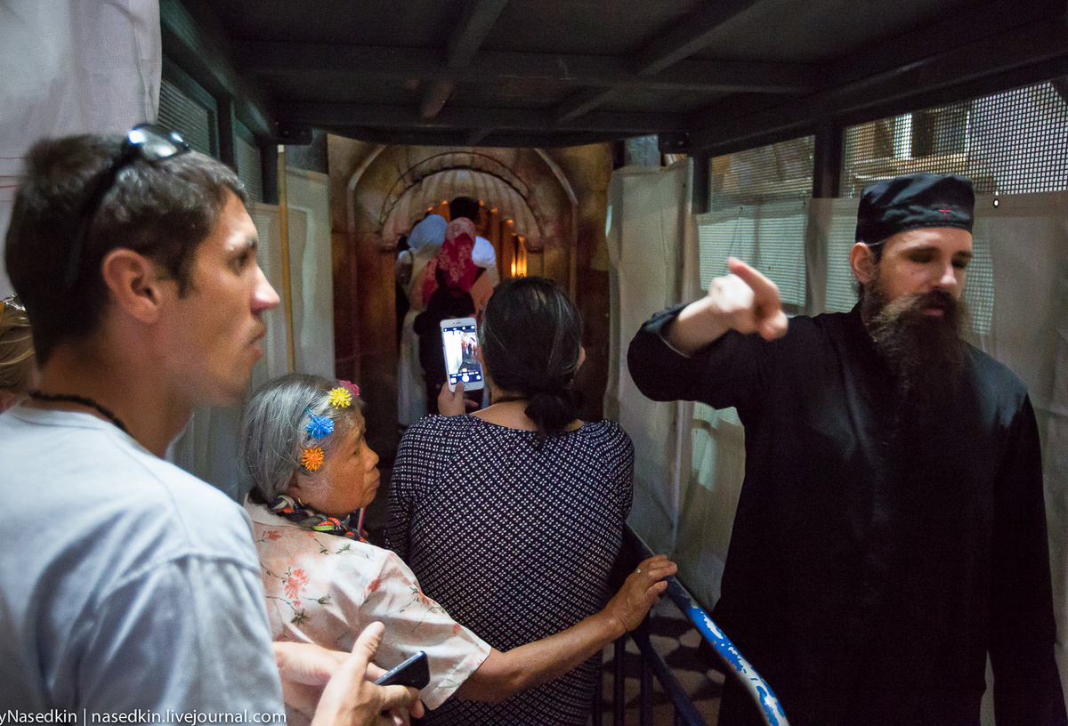 Если кому-нибудь из вас доводилось бывать в храме Гроба Господня, то вы наверняка запомнили, какой он во всех отношениях неординарный, чрезвычайно затейливый в плане расположения помещений изнутри. И вот представьте, что буквально каждый квадратный метр там заполнен мятежными и крикливыми людьми, ожидающими одно из ключевых событий Воскресения.