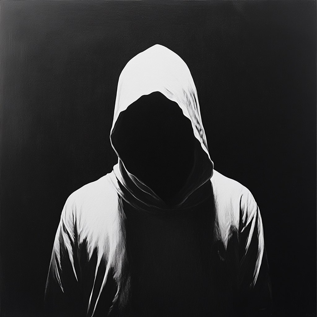 Создано на основе запроса: Silhouette of a hooded figure where the figure is white and everything else is pure black
