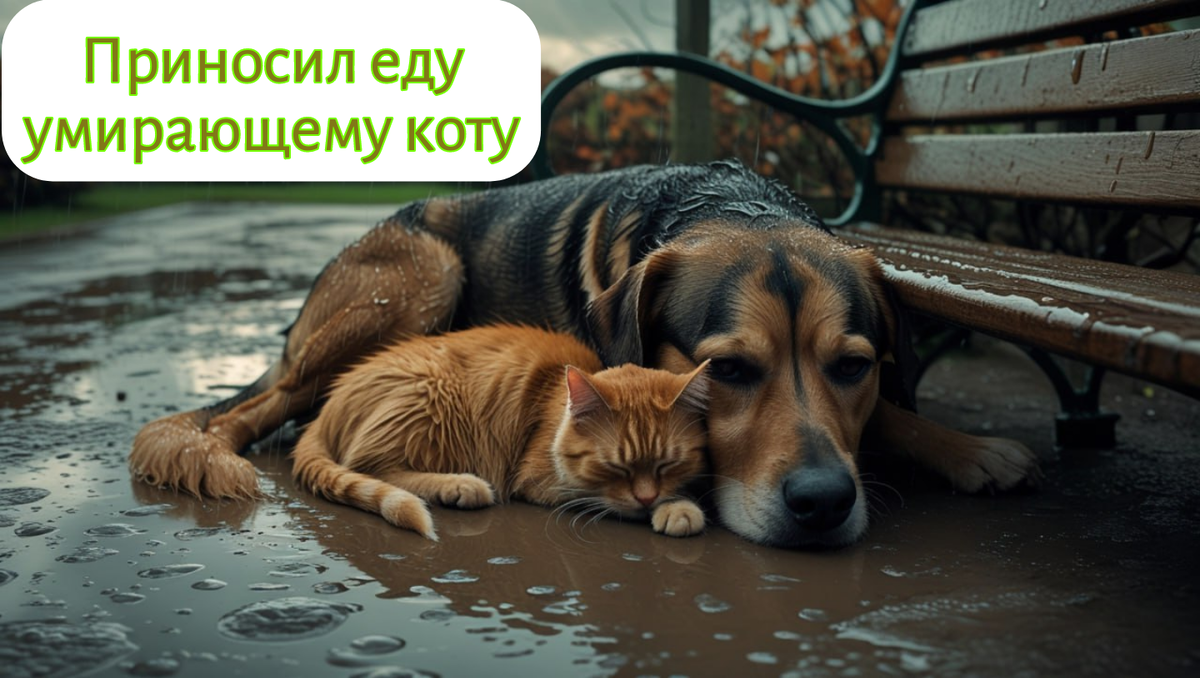 И нашла их под скамейкой. Василич почти не дышал, глаза полуприкрыты. А Тёма — мокрый до костей, но не ушёл. Лежал рядом, прикрыв его собой. Я подошла, накрыла их одеялом, поставила миску с тёплой кашей. Василич не ел. Я ушла — они были вместе.