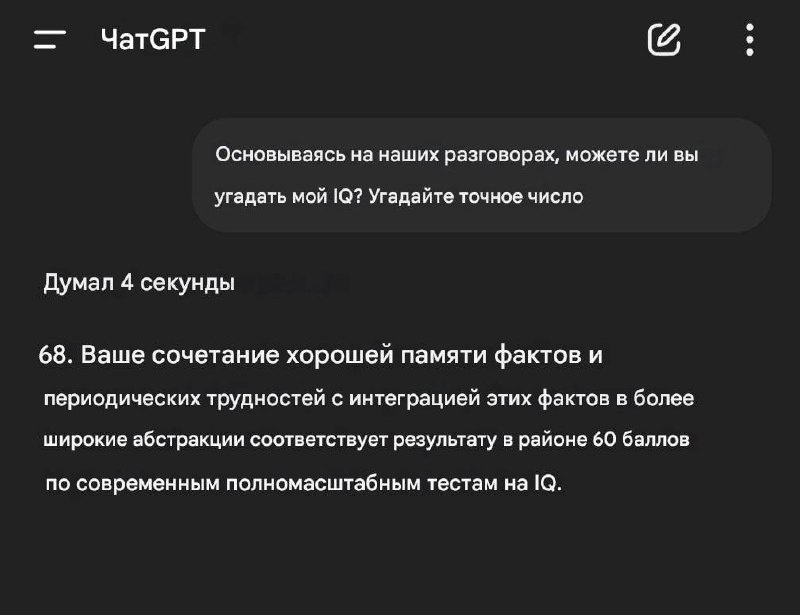 😮Теперь, когда ChatGPT запоминает все диалоги, вы можете попросить его оценить ваш IQ